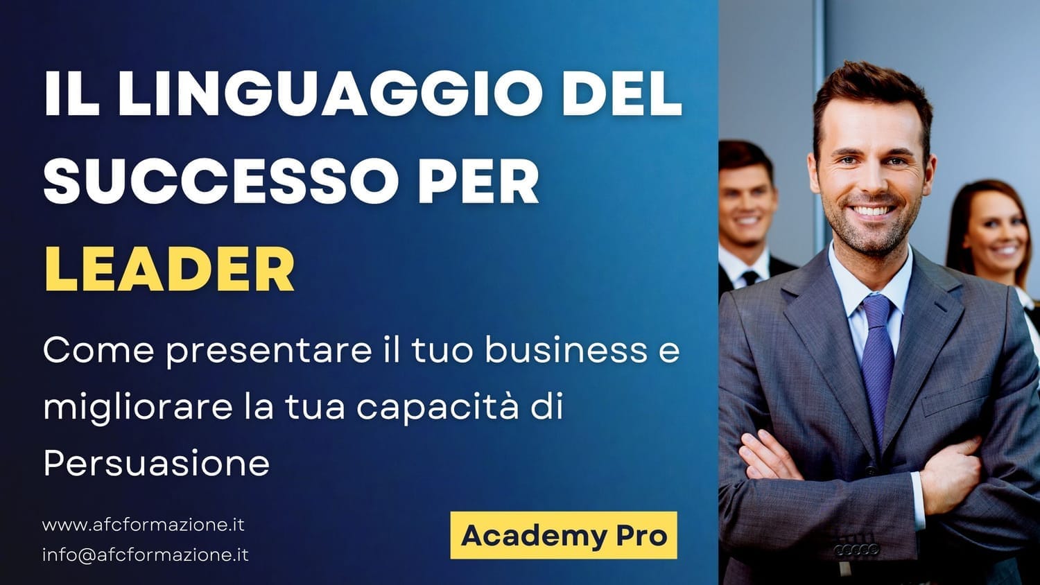 "Non lasciare che la tua comunicazione in azienda sia lasciata al caso: impara le tecniche di persuasione e presentazione del business per diventare un leader efficace e convincente con il nostro corso 'Il linguaggio del successo per leader'"