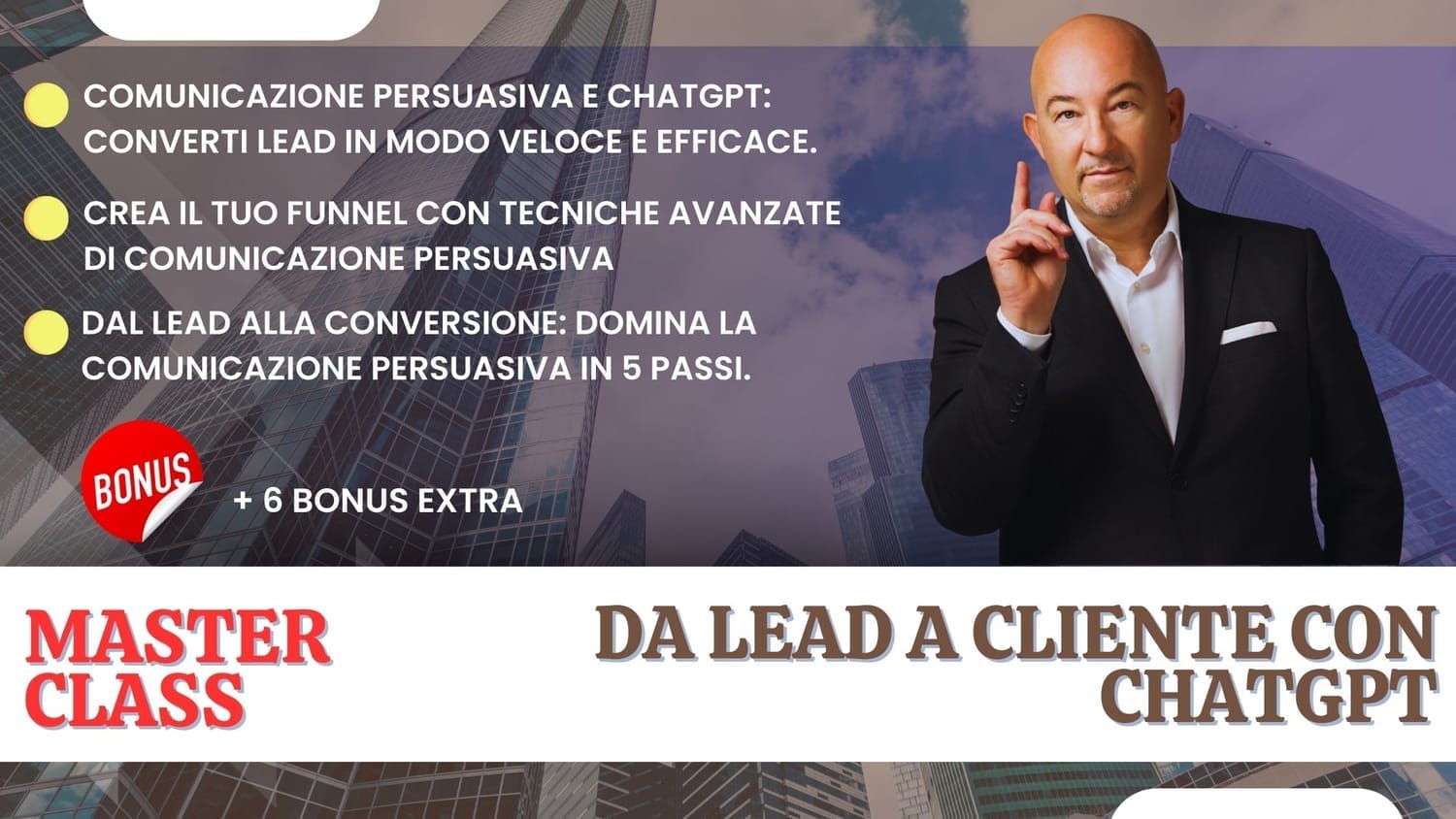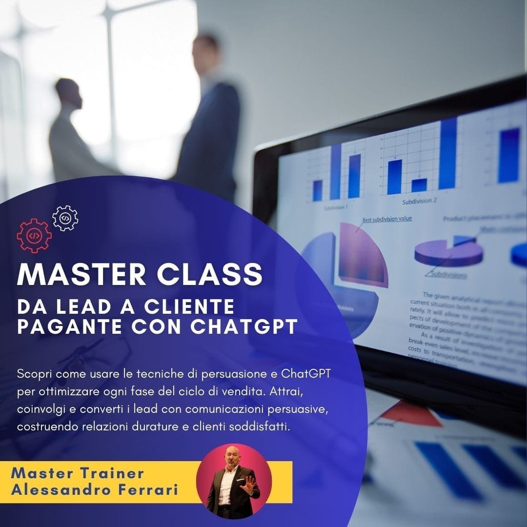 Se vuoi migliorare la tua capacità di convertire lead in clienti paganti, affinare la tua comunicazione persuasiva e velocizzare il tuo ciclo di vendita con ChatGPT, allora questa Master Class è perfetta per te. Le tecniche che apprenderai sono immediatamente applicabili e ti porteranno risultati concreti.