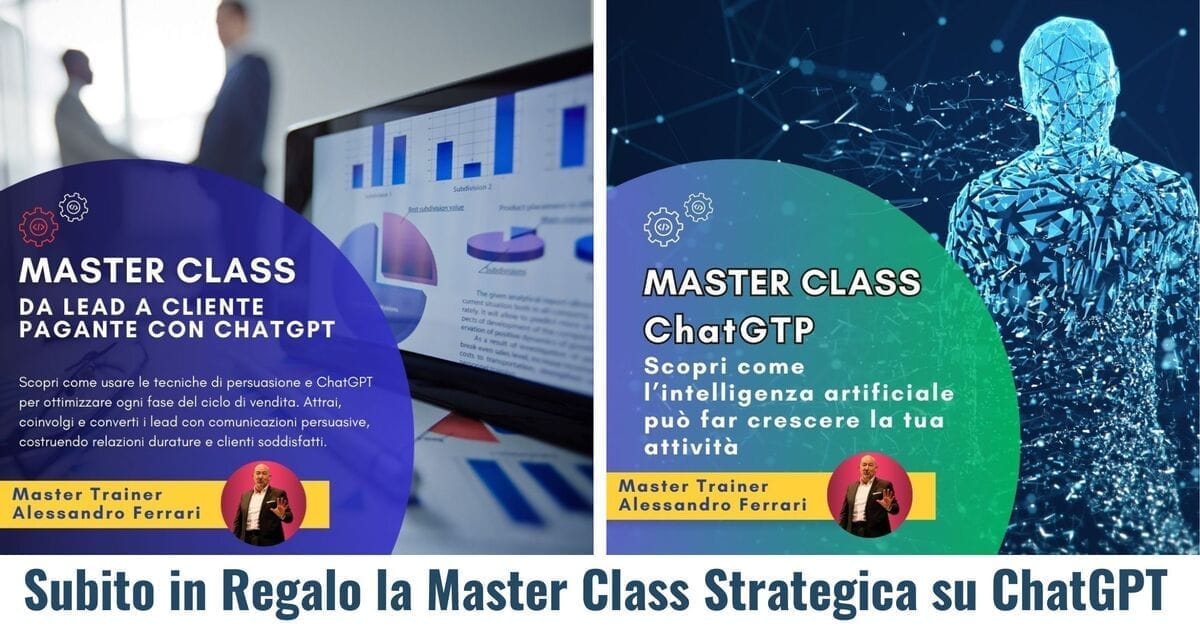 + Subito in Regalo anche la Master CLass Strategica su ChatGPT del valore Commerciale di 297€